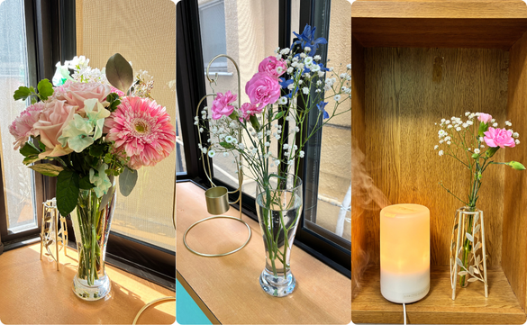 花を飾り、音楽をかけ、デュフューザーで香りを楽しむ。