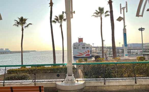 事務所を引き渡す最後の日、いいお天気だったので港に停泊しているさんふらわあを眺めながらおやつを食べていました。